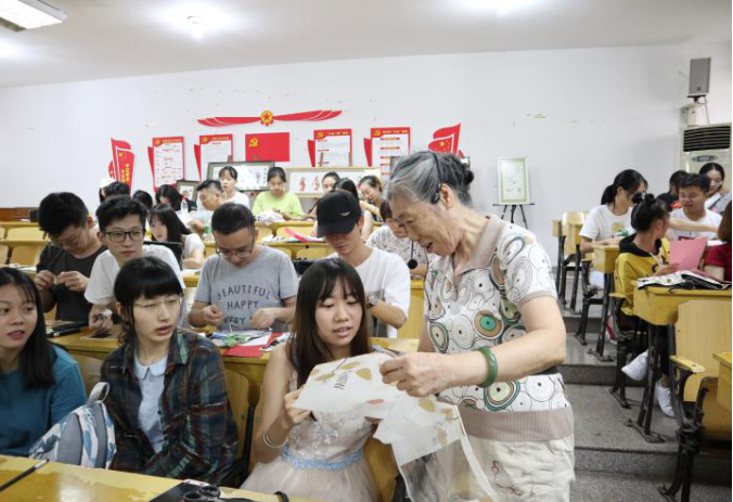 为发扬和传承非遗文化,2019年9月9日,艺术学院特邀请湘潭市首批非物质文化遗产传承人、湖南省折纸工艺大师——贺桂华老师开展讲座。贺老师从80年代初期就开始从事彩纸折叠的艺术创作,其作品题材丰富,或讲述民间传说、文学著作,亦或是历史故事、都市生活等,且构思奇特、造型生动、内涵深刻,所用材料均为废旧纸张,既艺术又环保,可谓独树一帜。伴随着热烈的掌声,贺老师带领学生们走进了折纸的世界。