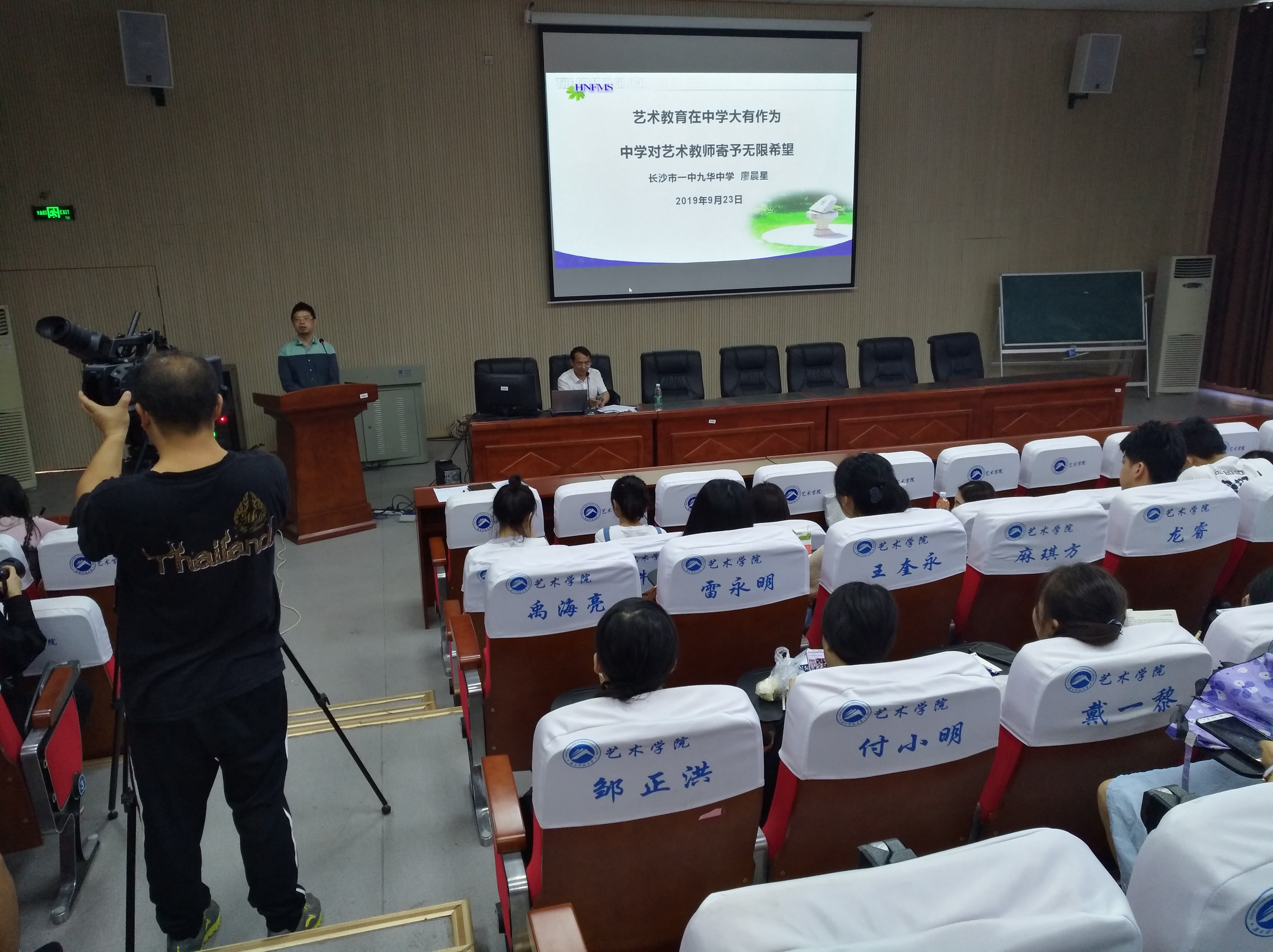 9月23日上午,英国正版365官网邀请教育实习基地“长沙一中九华中学”的副校长廖晨星在美术楼104做了一场“艺术教育在中学大有作为,中学对艺术教师寄予无限希望”的专题讲座。本次讲座由赵湘学副院长主持,美术、音乐系系主任以及各班级实习带队老师和英国正版365官网2016级全体师范专业学生聆听了讲座。