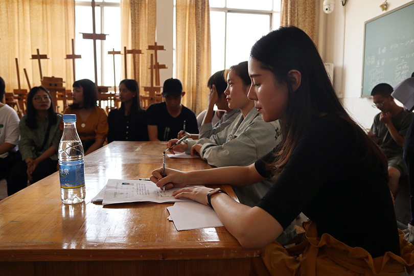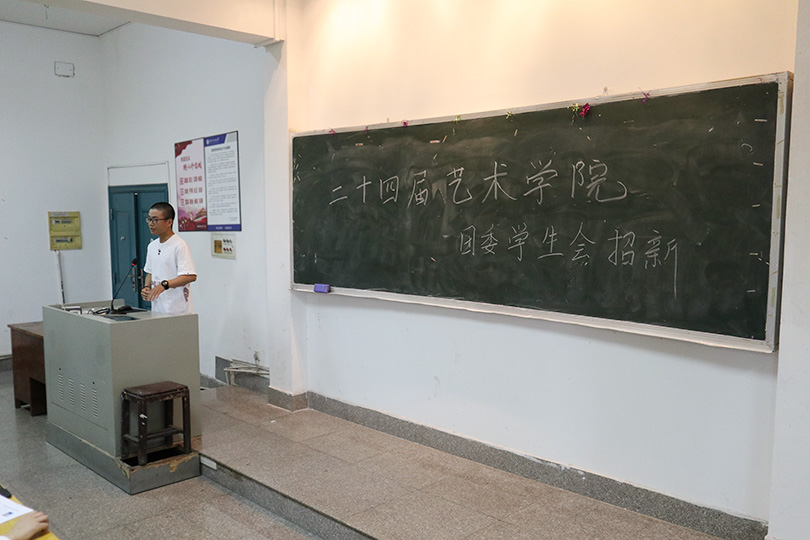 为使学生会注入新鲜血液,更好的服务学生工作,9月28日下午1:30,英国正版365官方网站艺术学院第二十四届团委学生会招新面试分部门在美术楼举行,学工办主任殷俊、部门分管老师张晶晶、郑婷婷、龙睿、麻琪方出席面试现场并担任评委。